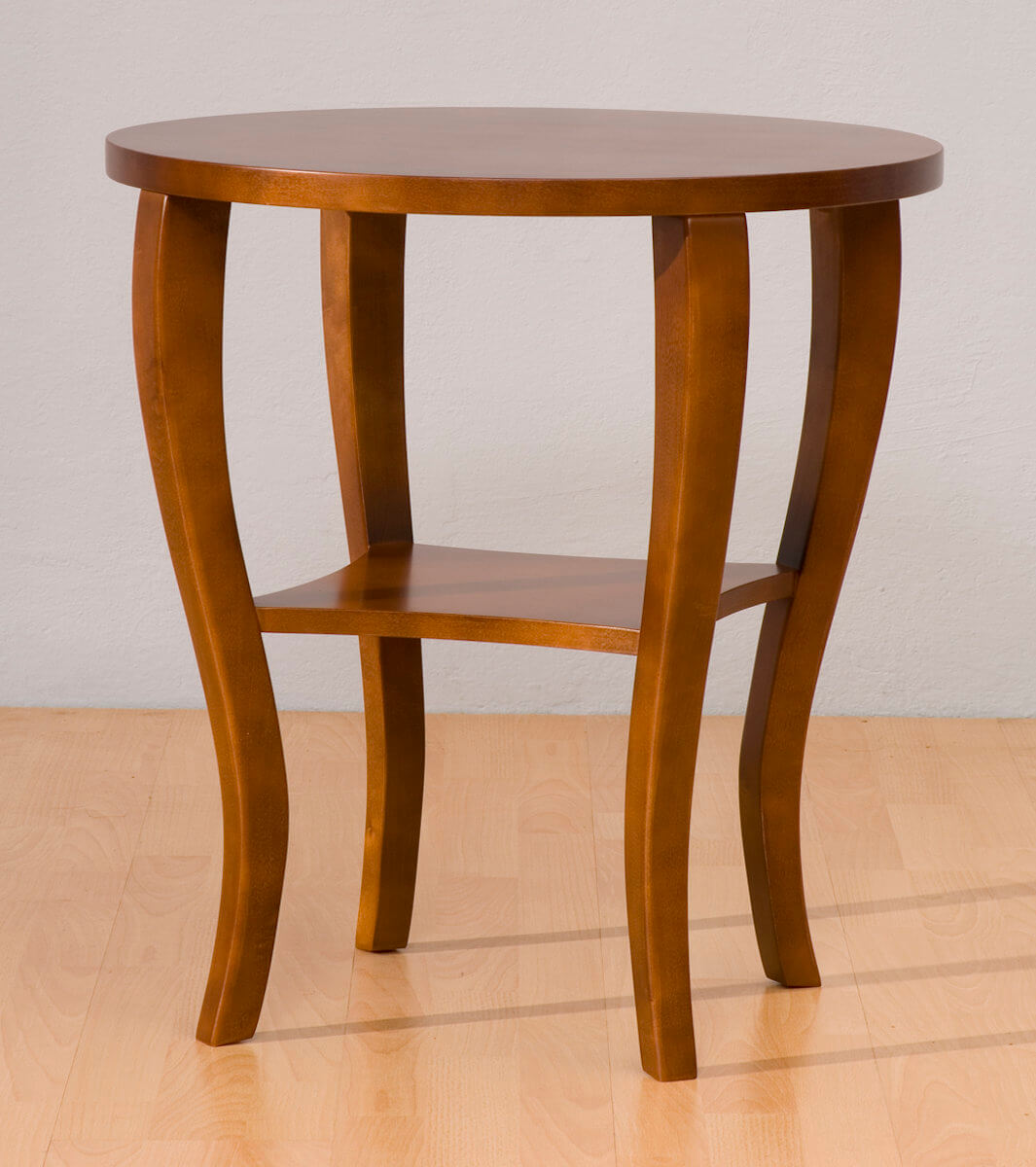 Ten stolik to wyraz elegancji i funkcjonalności, inspirowany eklektycznym stylem XX-lecia międzywojennego. Okrągły blat, wsparty na smukłych, delikatnie zaokrąglonych nogach, przyciąga uwagę swoją harmonią i subtelnością. Kluczowym elementem projektu jest dodatkowy dolny blat, idealny do odłożenia książki, gazety czy innych drobiazgów – praktyczne rozwiązanie, które czyni ten stolik wyjątkowo użytecznym.